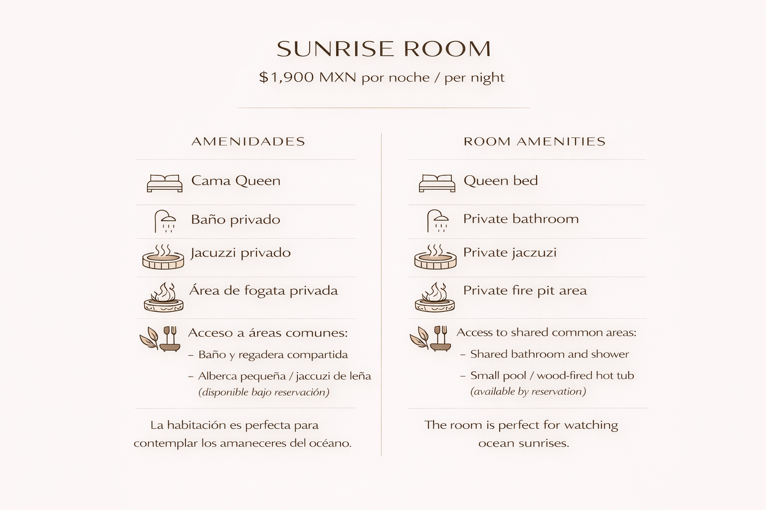Casa Brahma HABITACIONES-ROOMS SUNRISE $1,900 MXN DOWNWIND $1,800 MXN BEDOUIN $1,700 MXN HOTSPRINGS $1,600 MXN CARDON $1,600 MXN